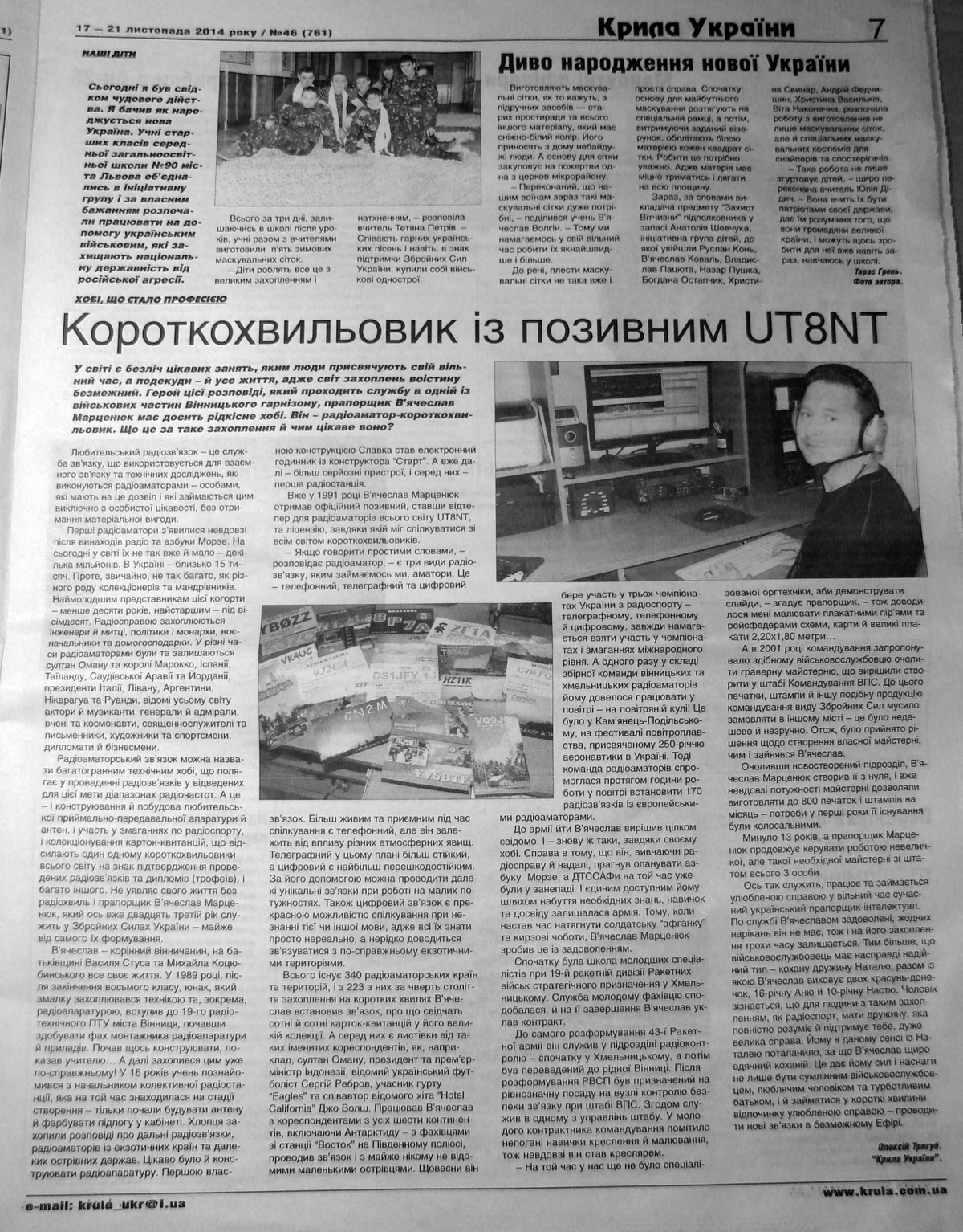 22.11.14 Наші знову у ЗМІ. Статтю "Короткохвильовик із позивним UT8NT" дивитися тут.
